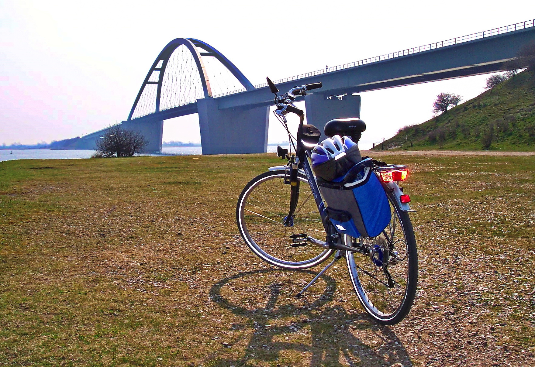 Die Vogelfluglinie A1 über die Fehmarnsundbrücke, dem größten Kleiderbügel der Welt.